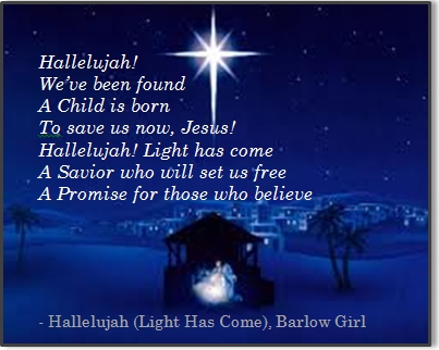 As I was driving to work one night in November, I heard a song that thrilled me with its harmonies and helped me start the Christmas season off right. The lyrics of the chorus reminded me what an awesome event it was when God laid aside His divinity to be born as a helpless baby. His coming brought light and hope.*