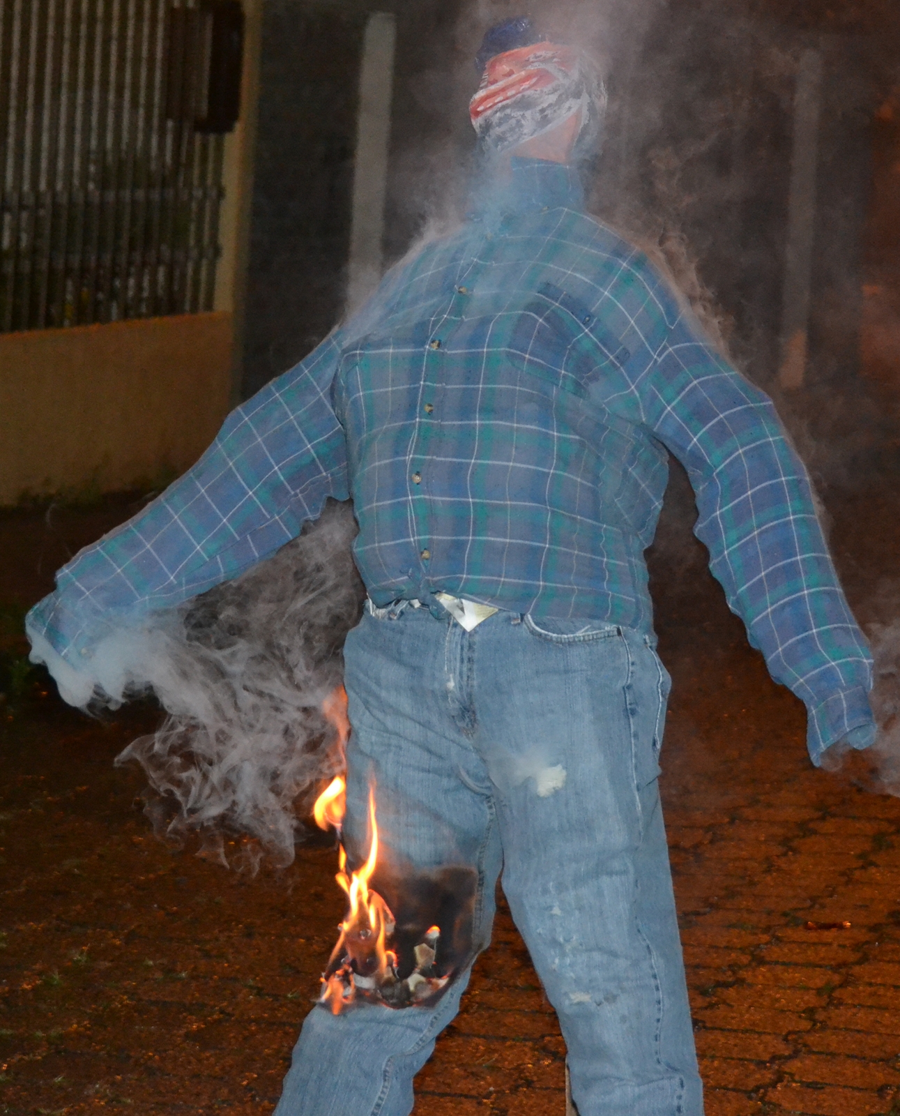 New Year’s Eve in Ecuador is a time when families gather together, make a scarecrow like figure they call the “Old Man”, which represents the year coming to a close, and burn that figure. Sometimes they make their scarecrow look like someone they don’t like, or make the figure take on aspects of something they want to change in their lives. Others make their old man to look like political figures or to represent negative things that have happened during the year. New Year’s Eve is a time for family, friends, food and fireworks. It is just one more way of expressing that it is time to go “Out with the old, and in with the new!”